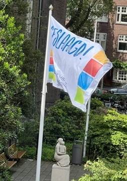 Geslaagd 12 juni 2025 We feliciteren alle leerlingen die geslaagd zijn! Voor hen hangt de vlag vandaag uit. En we wensen de leerlingen die nog een examen in het tweede tijdvak gaan doen, veel succes.