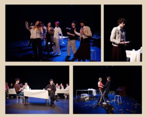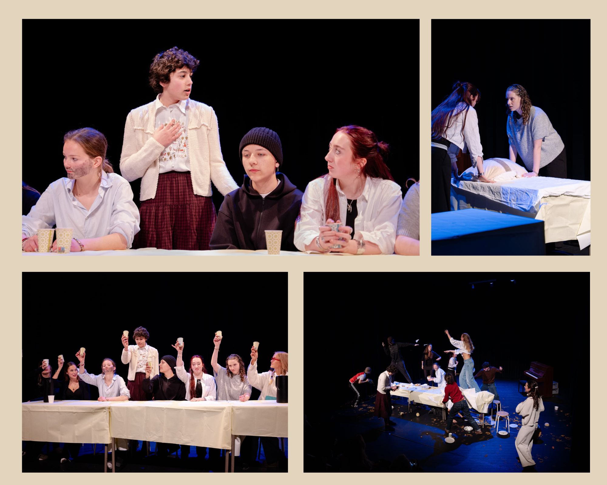 Het komische familiedrama Wat blijft liggen – de examenvoorstelling van 6V – werd in maar liefst drie voorstellingen vertolkt op vrijdag 20 en zaterdag 21 maart in de Toneelmakerij. Drie keer een volle zaal en een voorstelling die telkens weer anders was. Vooral in de laatste voorstelling gingen de leerlingen helemaal los en lieten het beste van zichzelf zien. Spel, interactie en improvisatie versterkten elkaar op een natuurlijke manier in een wervelende voorstelling waarin iedereen zichtbaar genoot. Wat goed om deze leerlingen zo gedreven te zien spelen! Zij bedachten het concept, de personages en de scenes allemaal zelf. Later kwam alles bij elkaar onder eindregie van theaterdocent Sophie van Broekhoven.